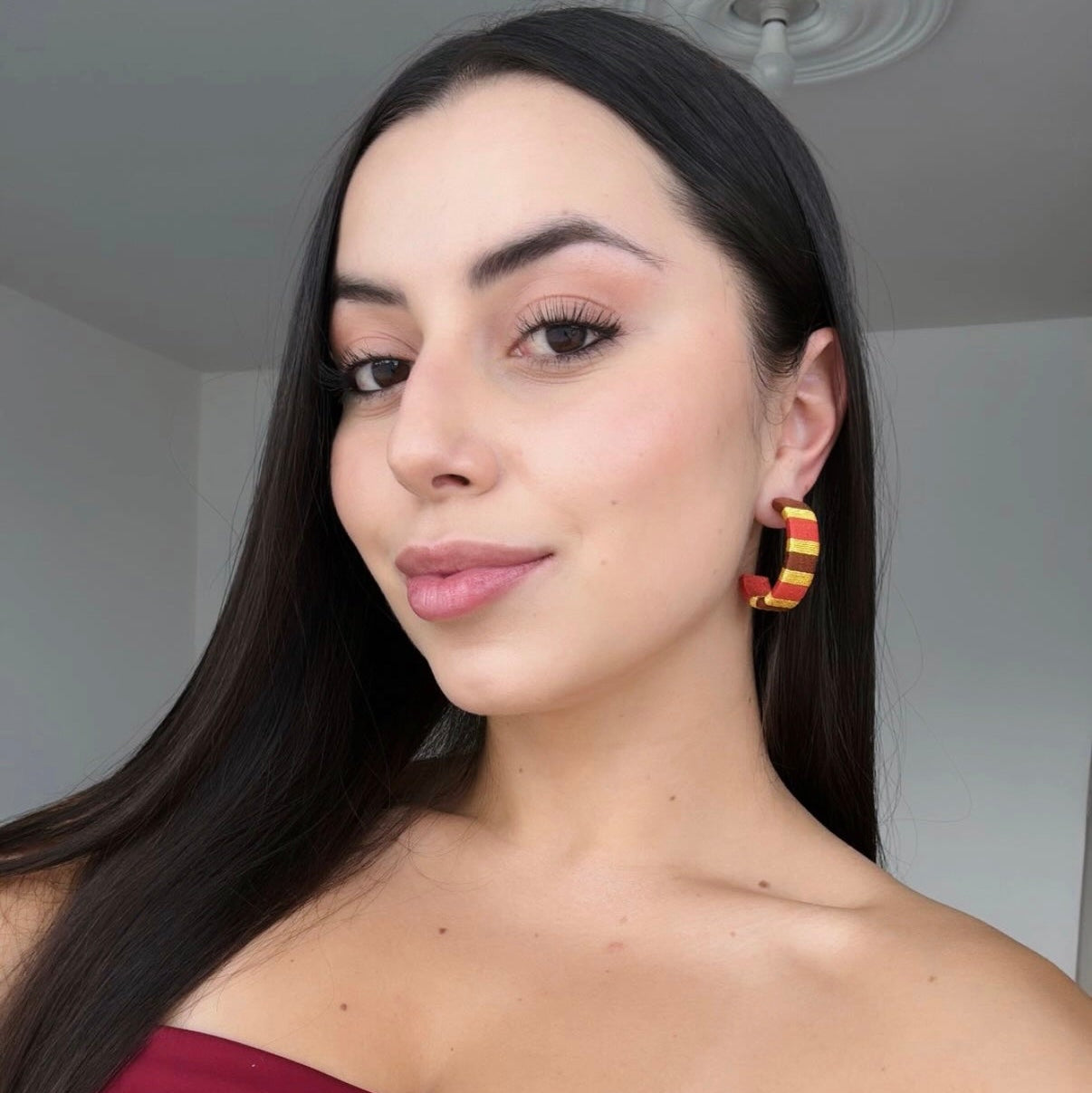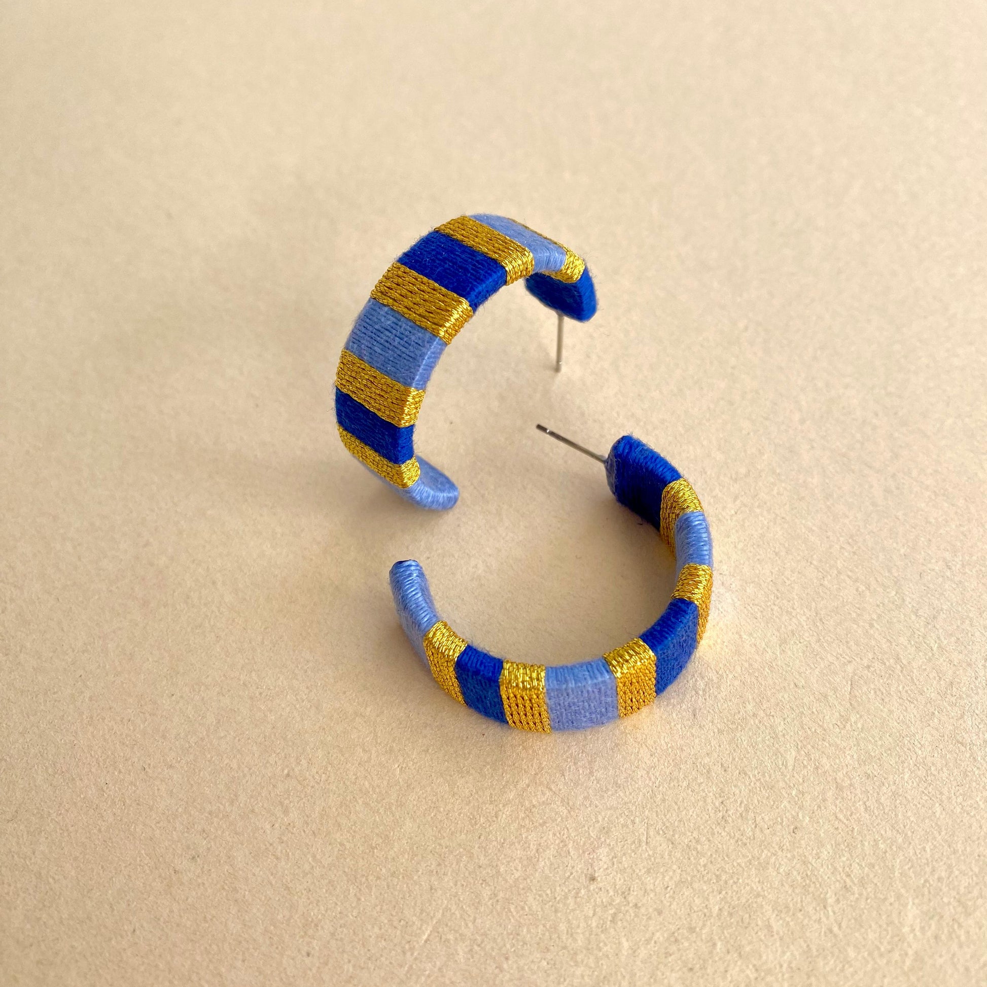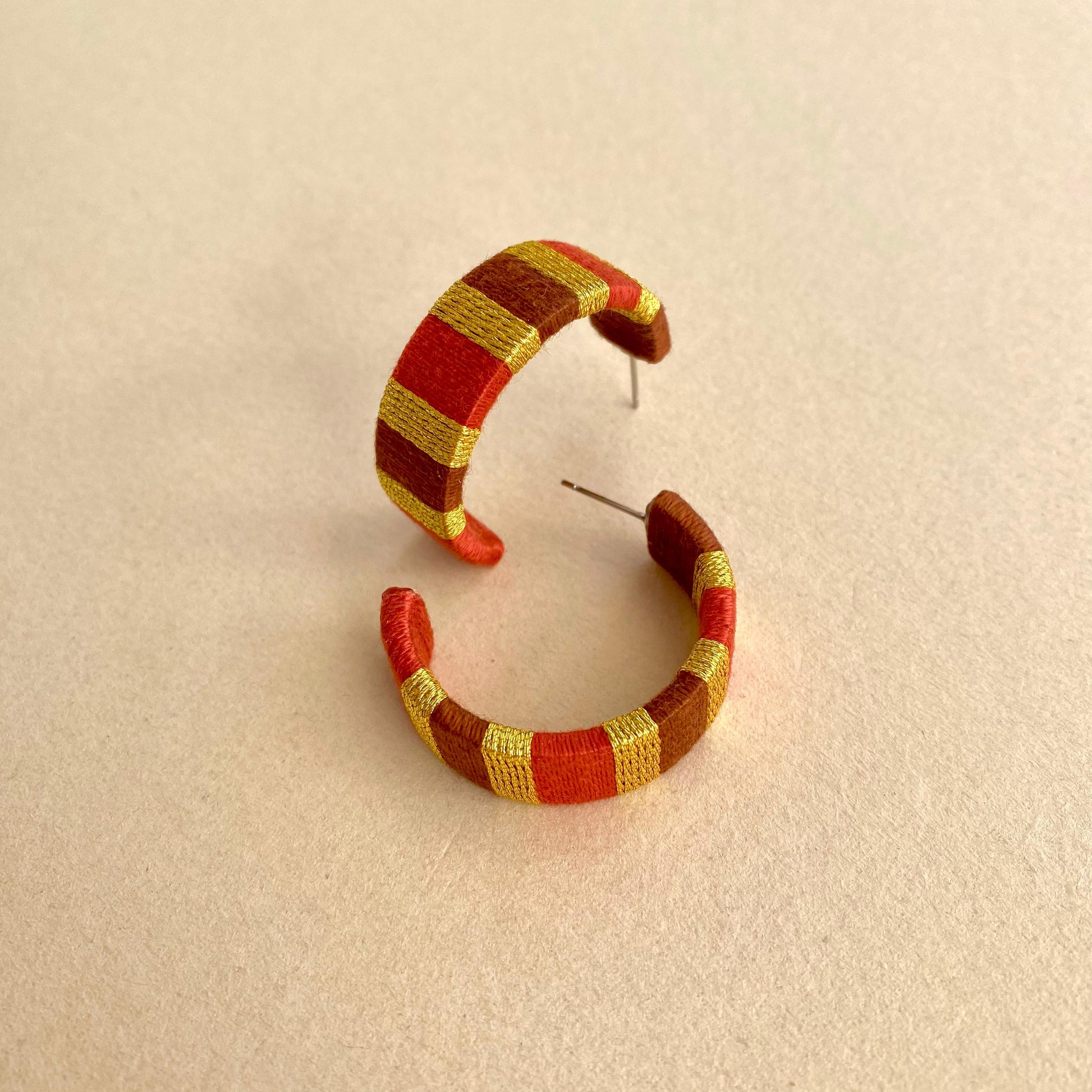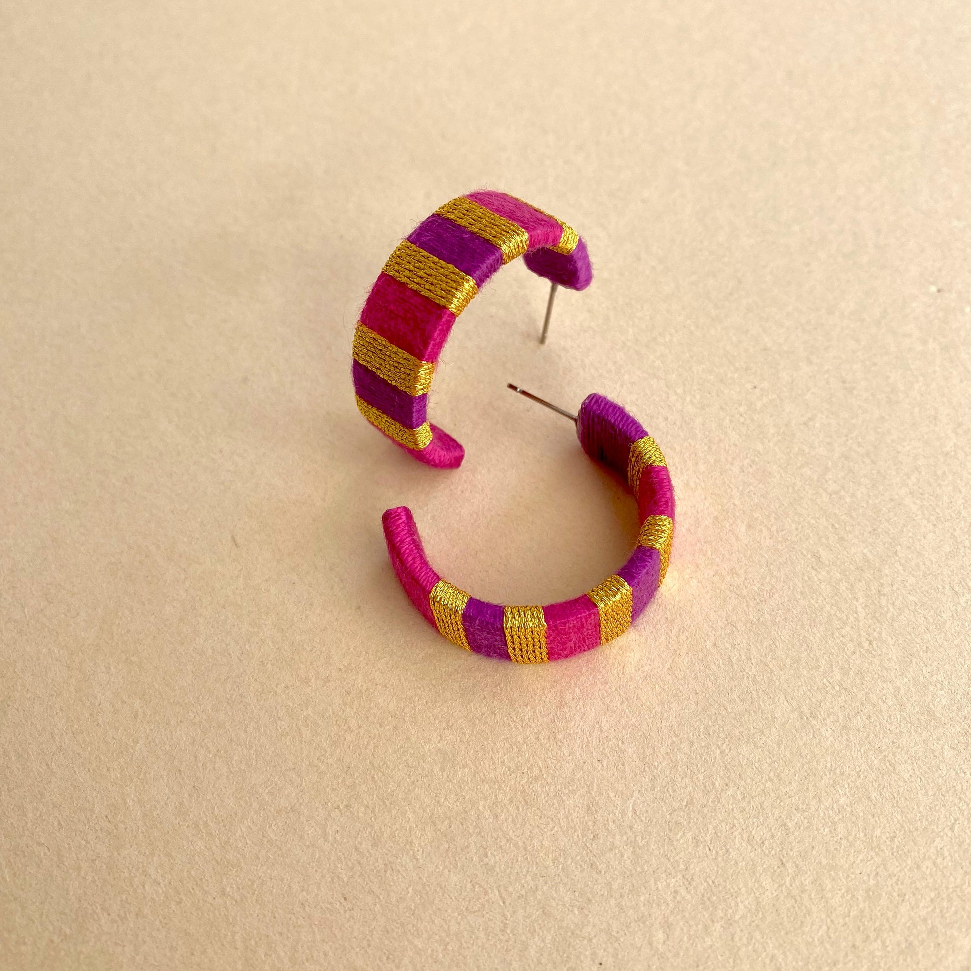 Candongas elaboradas a mano, con hilos entrelazados en una base tubular.